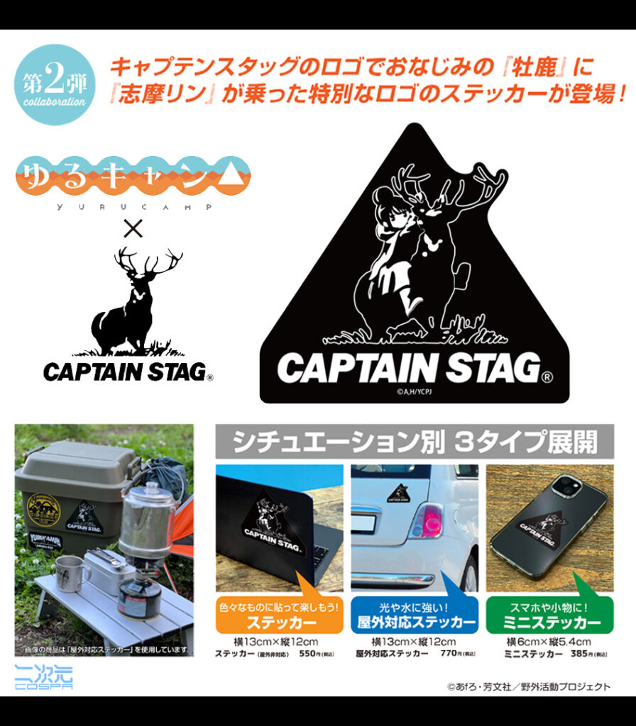 株式会社コスパは、『ゆるキャン△』×『キャプテンスタッグ』のコラボグッズ第2弾として「ステッカー」の発売を発表した。