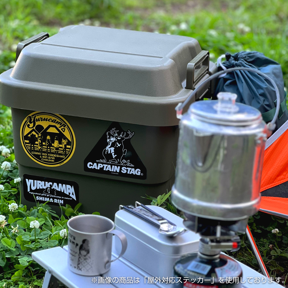 | ● ゆるキャン△×キャプテンスタッグ 屋外対応ステッカー サイズ:(約)縦12×横13cm 価格:770円(税込) 耐水、耐UV仕様で乗り物(車・バイク・自転車など)やキャンプギアなど屋外での使用にオススメ。 |