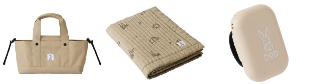 世界中ベビー用品を取り扱う株式会社ダッドウェイは、アウトドアブランド「DOD」を展開するビーズ株式会社とのコラボレーションで、「3WAYベビーカーバッグ」「刺繍キルトケット」「ポータブル扇風機」を2023年6月30日正午に発売する。