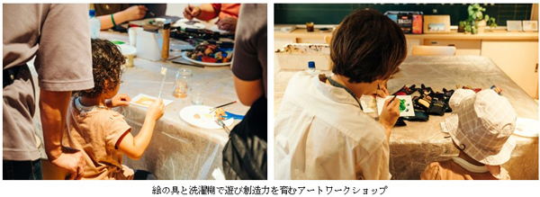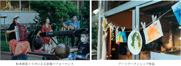 音楽ライブでは、木更津市出身のシンガーソングライター松本佳奈トリオによる鮮やかな音楽パフォーマンスが披露されました。また、お子さまと一緒に楽しめるアートワークショップでは、絵の具と洗濯糊で遊び創造力を育む体験を企画。笑顔にあふれる場面が多く、独創的なアートがいくつも生まれました。