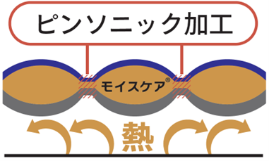 キルティングの加工を縫製から超音波で融着させる「ピンソニック加工」に改良しました。縫製のように生地に穴が開かない為、薄いながらも発した熱が逃げにくい構造にパワーアップしました。