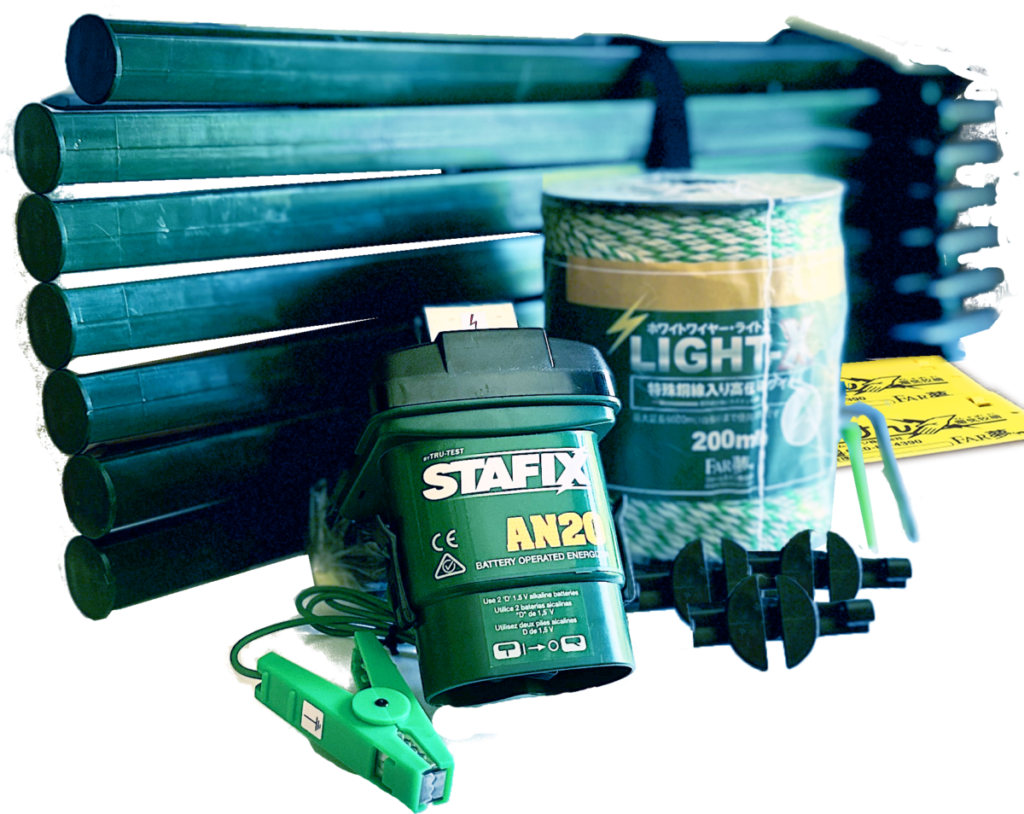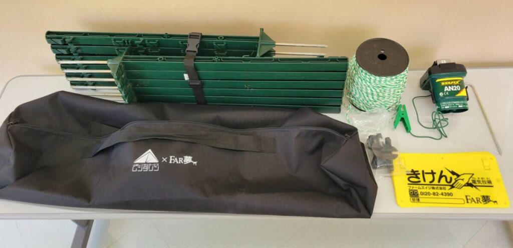 ●仕 様 : クマ・イノシシ対策用レンタリン×FAR夢オリジナルセット 電気柵周囲最大50m、3段張り、支柱間隔4m