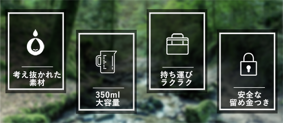 さらに、滑り止めゴムカバーがついているため、手を滑らせて落下する心配も必要ありません。350ml大容量でありながら軽い素材で、どこでも持ち運び楽々!