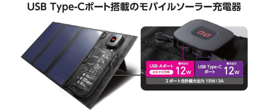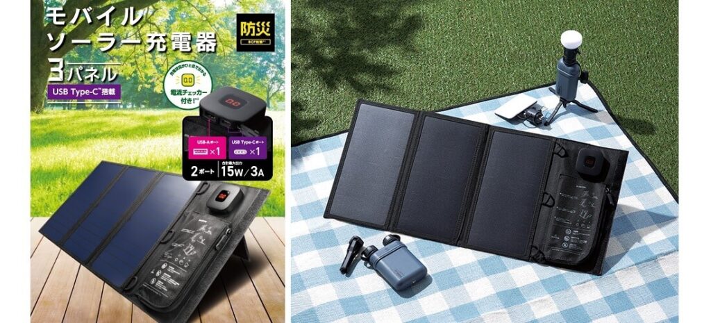 普段はアウトドアなどに、非常時は防災グッズに!USB-CとUSB-Aポートを搭載した折りたためる3パネルのモバイルソーラー充電器を新発売