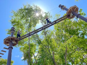 地上8Mの⾼さの本格空中アスレチックSKY ADVENTURE(スカイアドベンチャー)やZIP ライン、スリル満点の⼤型ブランコ SWING MAX(スイングマックス)は⼤⼈から⼩⼈まで楽しめる冒険の世界です。徹底した安全管理の中、⽇常では味わえないスリルを⾃然の中で体感いただけます。