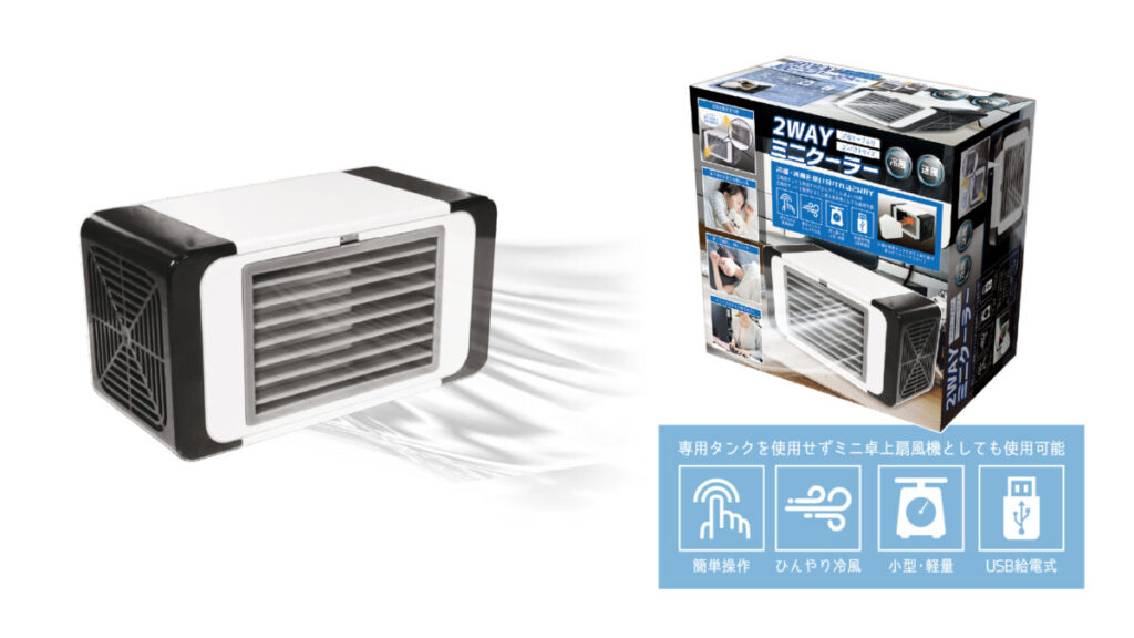 LED付のパワフルなハンディファンやエコな冷風ミ二クーラーが新発売