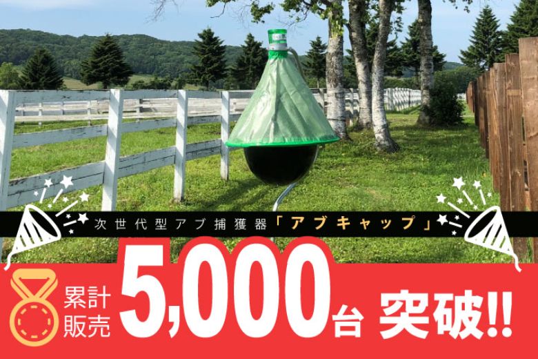2016年4月からファームエイジ株式会社が販売を行っている次世代型アブ捕獲器「アブキャップ」。同製品の累計販売台数が5000台を突破した。
