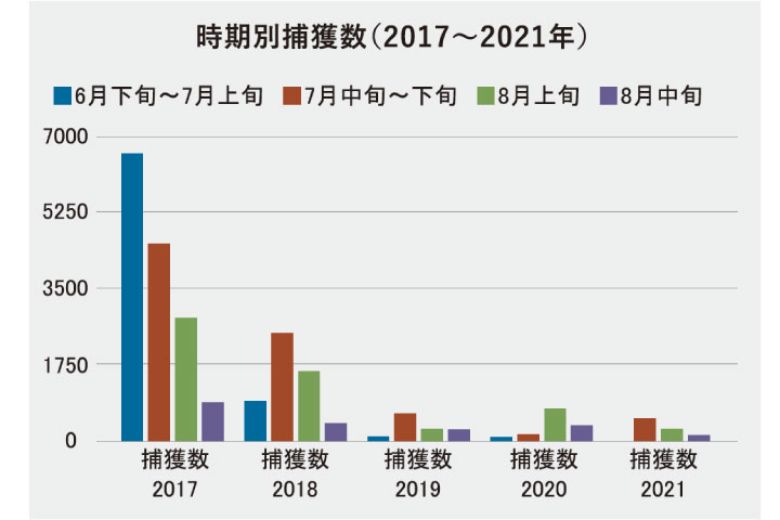 その結果、アブの捕獲数が年々減少し、試験開始当初と比較して、1/6までに減るという結果が得られた。