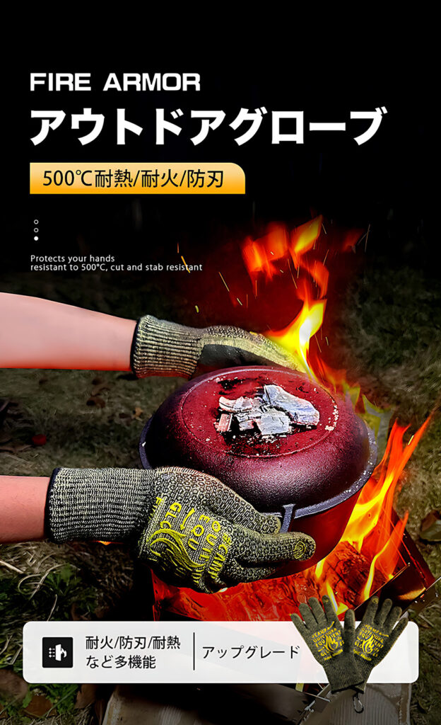 耐熱グローブ『FIRE ARMOR 2』は最大500℃の圧倒的な耐熱性を誇り、あなたの手を熱から守ります。