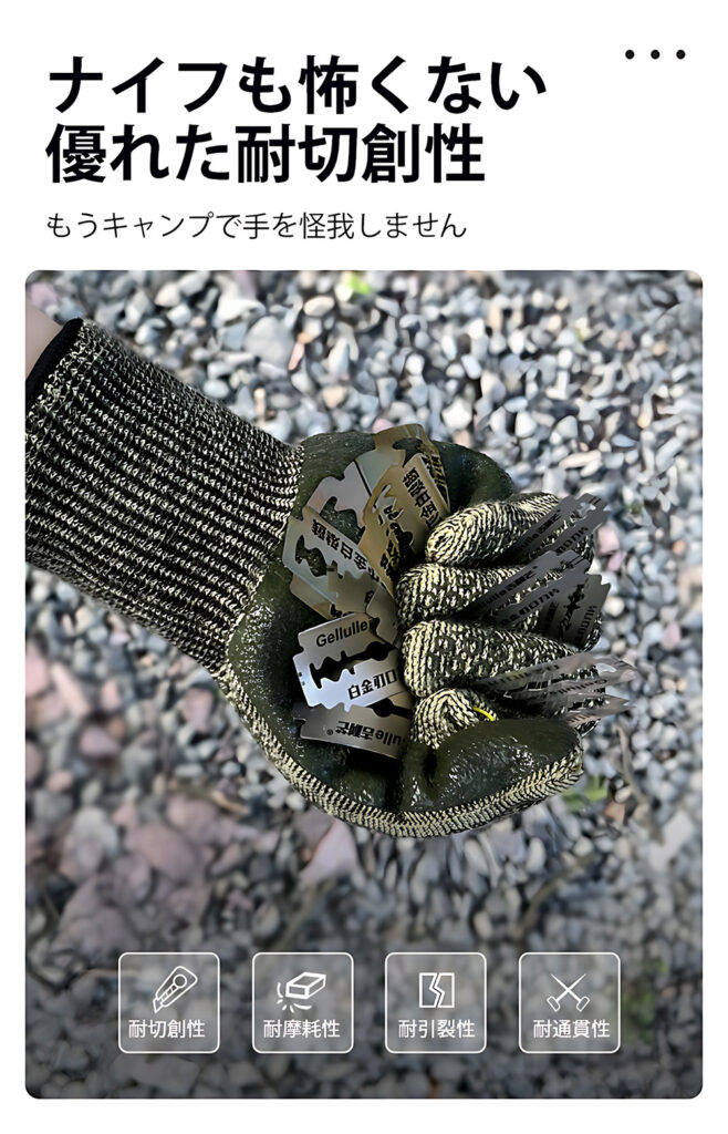 本製品は耐切創性・耐摩耗性・耐引裂性・耐貫通性に優れています。