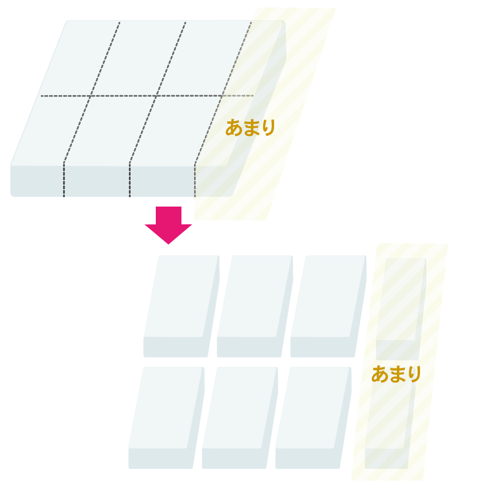 通常サイズの枕を生産する際、取り数の問題で材料であるフォームに余りが出ます。