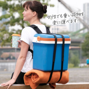 - ダンボールやクーラーボックス、ボードを背負って運べる