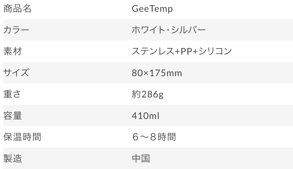 GeeTempはSUS316という、丈夫で安心して使える高品質なステンレス素材を使用。
