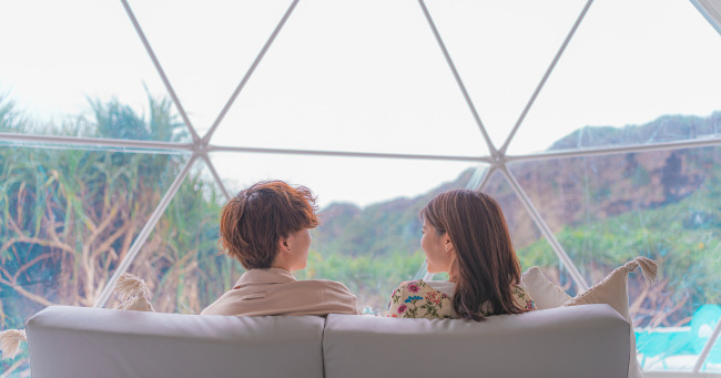 出演者が撮影した実際の画角で同じポーズで撮影ができるので、glampark resort アクナ浜を利用して撮影するだけで出演者と同じ気分が味わえます。