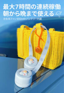 同製品は手のひらよりも小さく、約150gと軽量で使いやすい。また、3段階の風量調節ができ、角度も変えられるため、自分好みの風を送ることができる。左右各ファン900mAhバッテリー内蔵で最長7時間の使用が可能だ。価格は5,400円(税込)。室内はもちろん屋外でも気軽に活用してみるのはいかがだろうか。