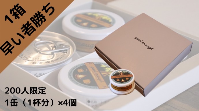 神奈川のサラリーマンが企画したオリジナルキャンプグッズシリーズ「good enough」は第一弾として焙煎済の珈琲豆を缶詰にした「CANNED COFFEE BEANS」の販売資金をクラウドファンディングサイト「マクアケ」にて募集を開始しました。