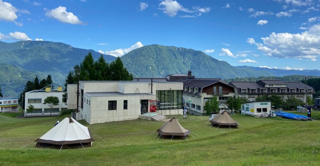 白馬乗鞍温泉スキー場ゲレンデ内にオープンするキャンプ場。ホテルがすぐ近くの為、初心者でも安心してご利用いただけます。