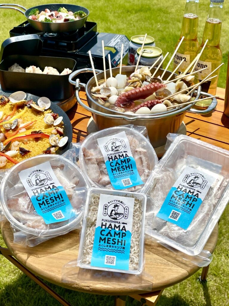 ふくしまで水揚げされた魚介類をアウトドアでも手軽に食べられるように加工した「ふくしま浜キャンプ飯」お魚パック。