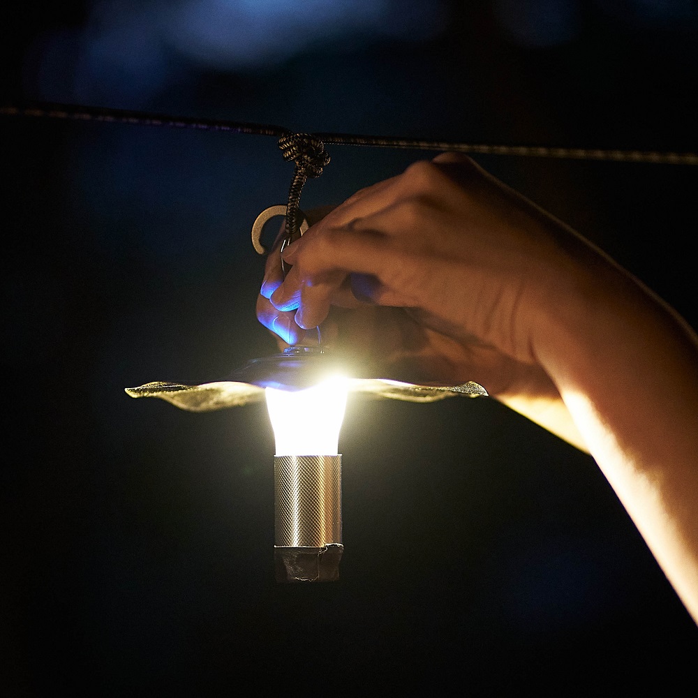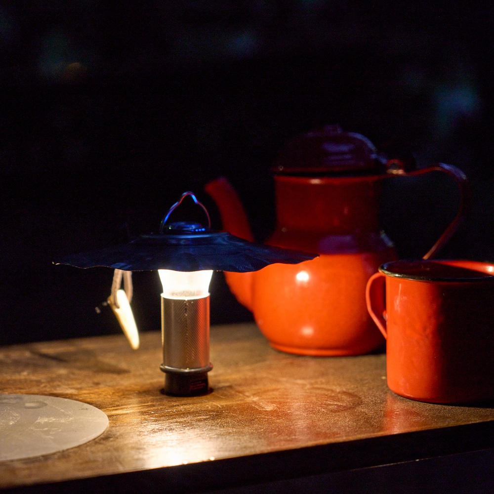 関連会社が手掛ける金属加工技術を活かし、日本初の技術を活用して製作しており、シェード(傘)部分とボディ(胴)部分からなる、センスあふれるランタンギアとなっています。