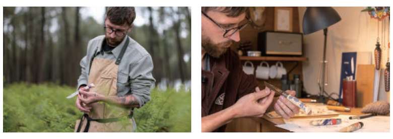 祖父母も両親も、キノコを採ったり木片を掘ったりと日常的にオピネルナイフを使っていたそう。彼自身も15年前からオピネルナイフを愛用している。