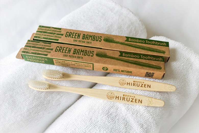 アウトドア初心者でも安心・気軽に利用できるよう、充実した備品やアメニティが用意されている。タオルや歯ブラシなど基本的なものはもちろん、化粧水や乳液など女性にとって嬉しいアメニティも備わっている。またプラスチック資源循環促進法の取組の一環として、「竹歯ブラシ」の使用及びバイオマスアメニティ(米粉由来)を使用し、今後もプラスチック使用料削減に努め、環境問題の取組に貢献していく。