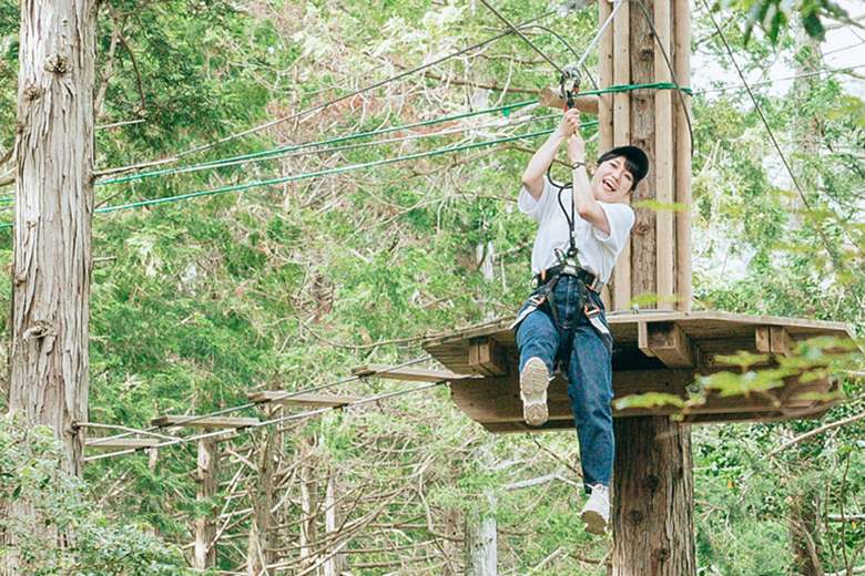 蒜山地域では、森林アドベンチャーを楽しめる「ボウケンノモリ HIRUZEN」やホースパークでの乗馬体験、リバートレッキング、サイクリングなど、地元提携で多彩なアクティビティが盛り沢山。大人も子供もワクワクする体験を、グランピングと合わせて楽しもう。