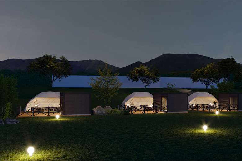 - 快適な非日常空間で過ごすドームテントやスタイリッシュなコンテナキャビン