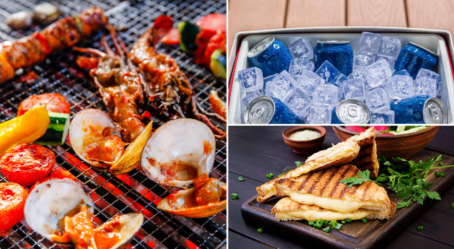 お食事は房総ポークをメインに、牛、鶏肉、フランク、はまぐりやエビ、EM菌栽培の野菜(農薬:栽培期間中不使用)の盛り合わせなどがいただけます。(季節により若干の変更あり)さらに、オプションの飲み放題は食事開始から3時間、部屋ごとにクーラーボックスでお酒とドリンクの飲み放題を提供します。また翌朝の軽朝食もセットになっており、ホットサンドメーカーと食材、酪農牛乳のセットで朝の時間を楽しめます。