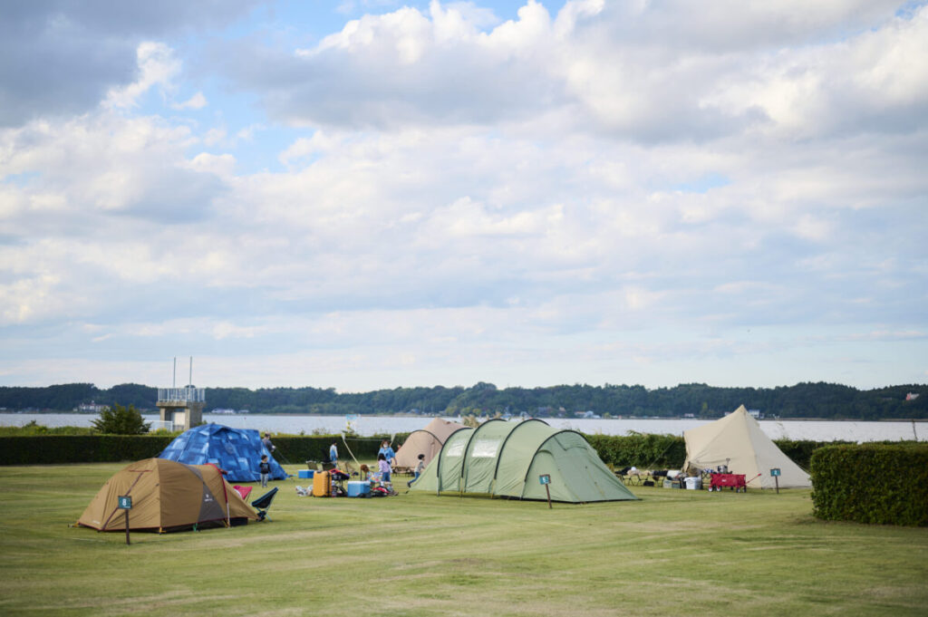 イベント会場の「涸沼(ひぬま)自然公園キャンプ場」は、北関東自動車道 水戸南IC下車約15分と、首都圏からのアクセスの良さが魅力。遮るもののない広々とした芝生広場には澄んだ空が大きく広がる人気のキャンプ場です。