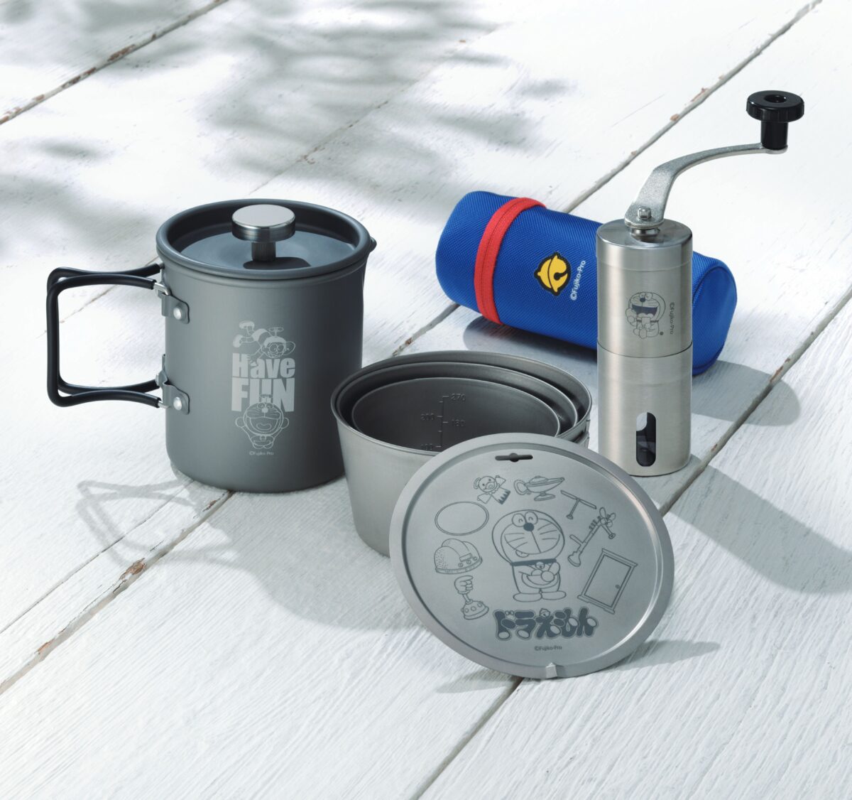 コンパクトサイズのコーヒーメーカーは、日本のアウトドアブランド「ハイマウント」との共同製作となり、内側に1杯ごとの目盛りが刻まれており、誰でも簡単にコーヒーが淹れられるフレンチプレス式だ。その他、ドラえもんデザインの専用ケースが付いたコーヒーミル&ケースや、ベルモント製のチタンシェラカップ4点セットなど機能性にもこだわったアイテムが多数販売されている。