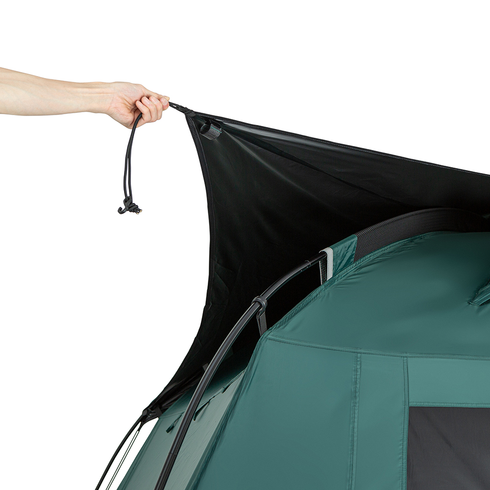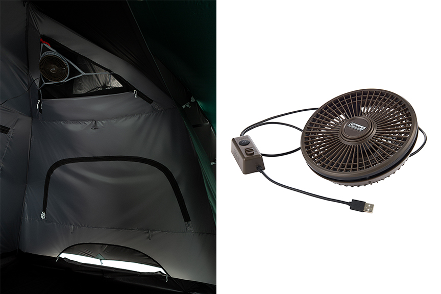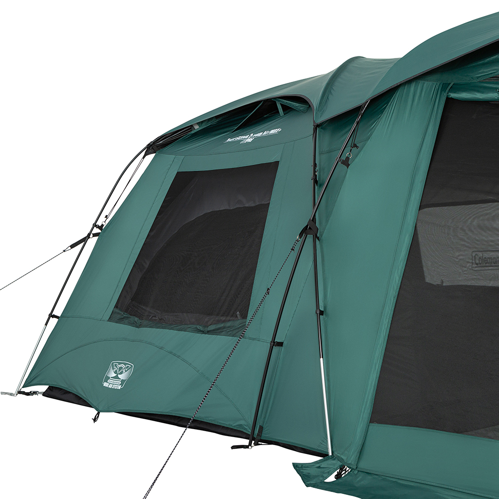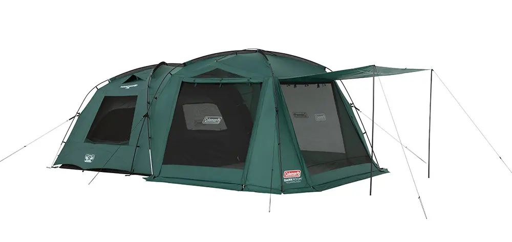 これまでのダークルーム機能に加えて、ワイドエアメッシュやリバーシブルファンベンチレーション(別売)の使用により換気機能が大幅に向上し、夏でも快適な居住空間をつくる“エアーシリーズ”の2ルームテント。