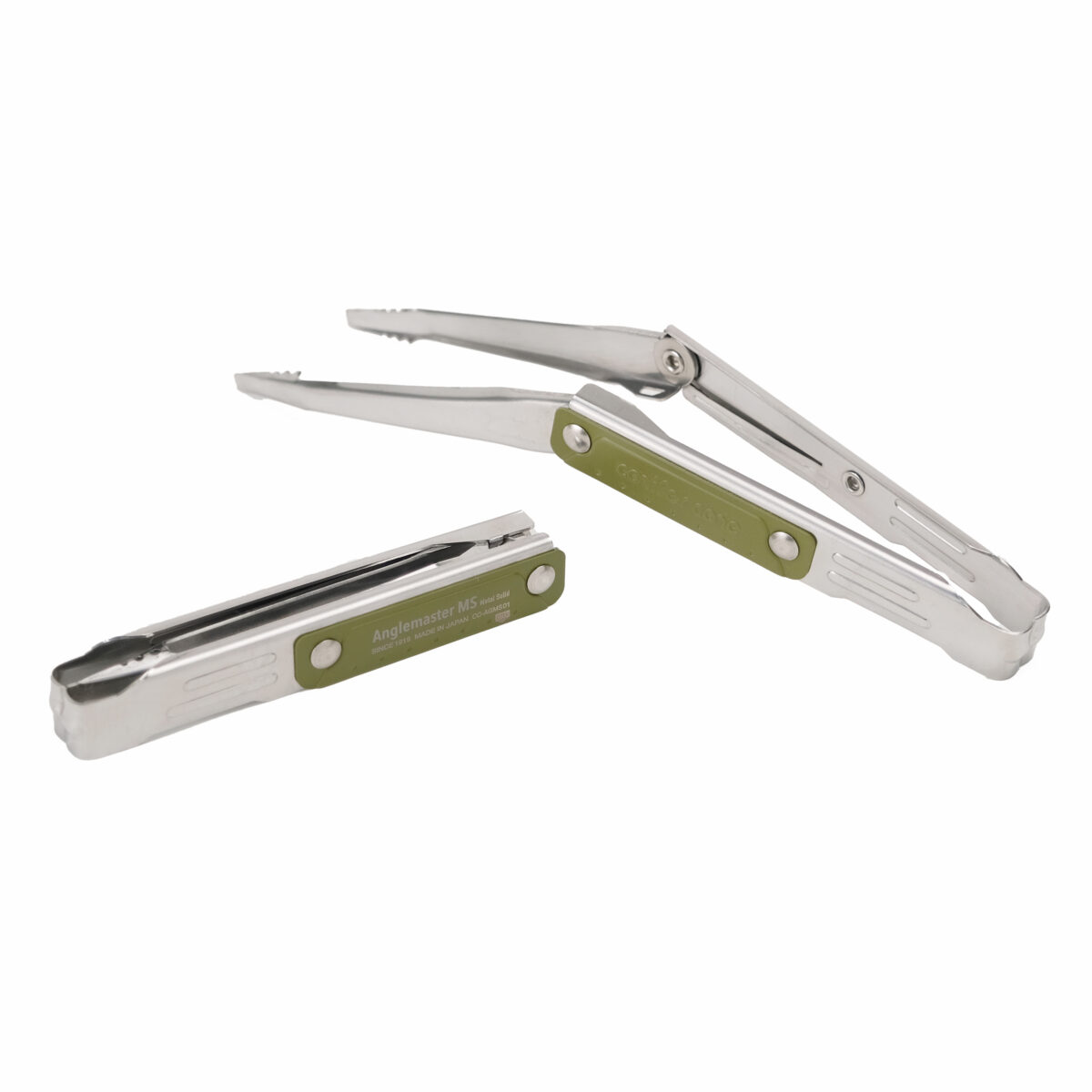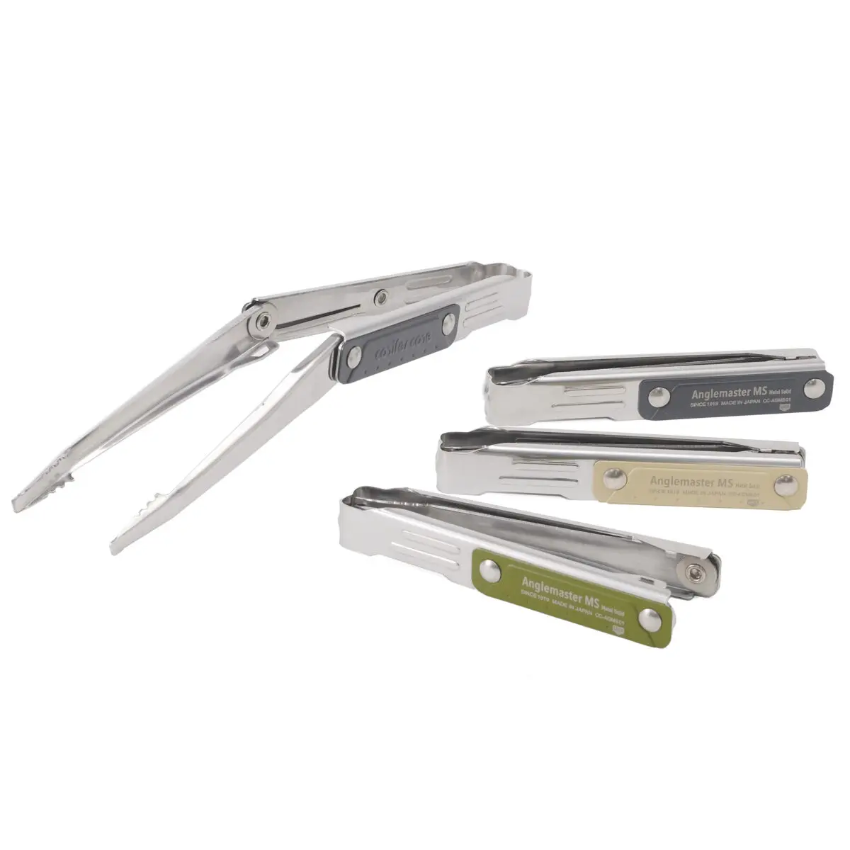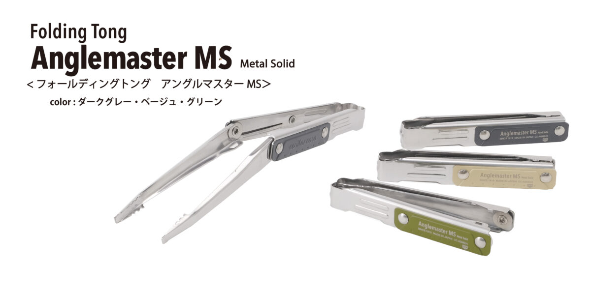 たたむとわずか2.5×14cmの超スリム。 折りたたみトング 「アングルマスター MS」 に新色 「ダークグレー」 「ベージュ」 「グリーン」 の3色が追加