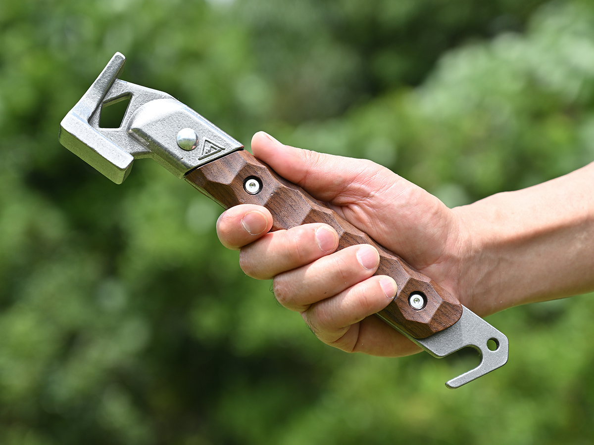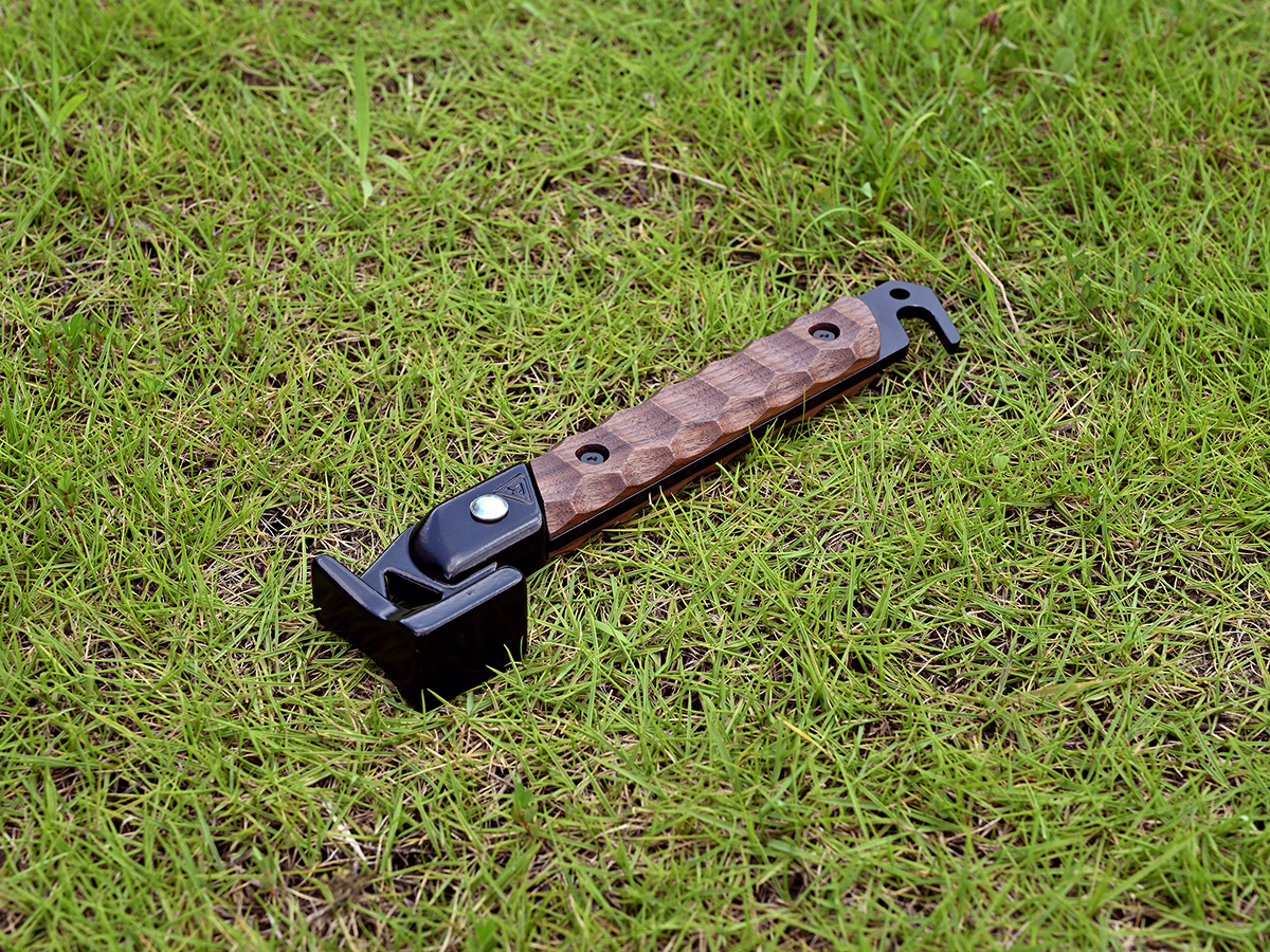 コンパクトなこのペグハンマーですが、ペグ打ちにも必要十分な重量バランスがあるので心配は無用です。I型形状ならちょっとしたポケットにも入れられ持ち運びも楽々。また、ペグ抜きにも使えるフックを付けていますのでこれ一本でペグ打ちからペグ抜きまですべて賄えます。