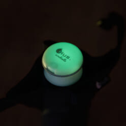 ハンドルと石づき部分は、太陽光や蛍光灯などの光エネルギーを蓄えて、暗い場所で発光することで目印になります。