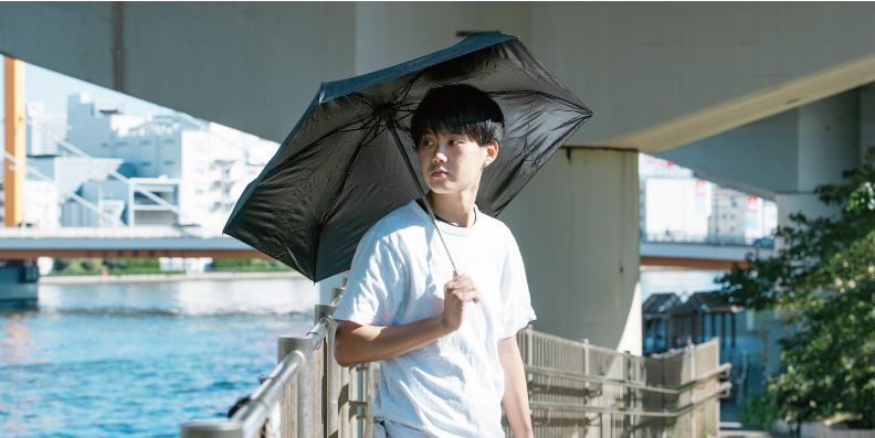 HUS.のParasolシリーズは、日差しも雨もカバーする晴雨兼用日傘です。生地裏面にコーティングを施すことで、高い遮光・遮熱効果を実現しました。