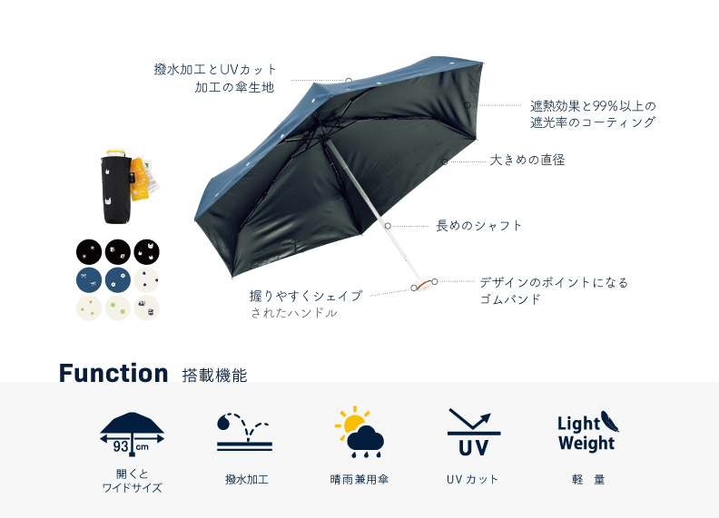 使用時は約93cmとワイドに開いて日差しや雨をしっかりカバーし、収納時には約16cmまでコンパクトに畳める優れもの。重量は約190gと軽量で、毎日の持ち歩き用に最適です。 男女問わず使えるシンプルなものから、かわいいデザインまでバリエーション豊富なラインナップが魅力。