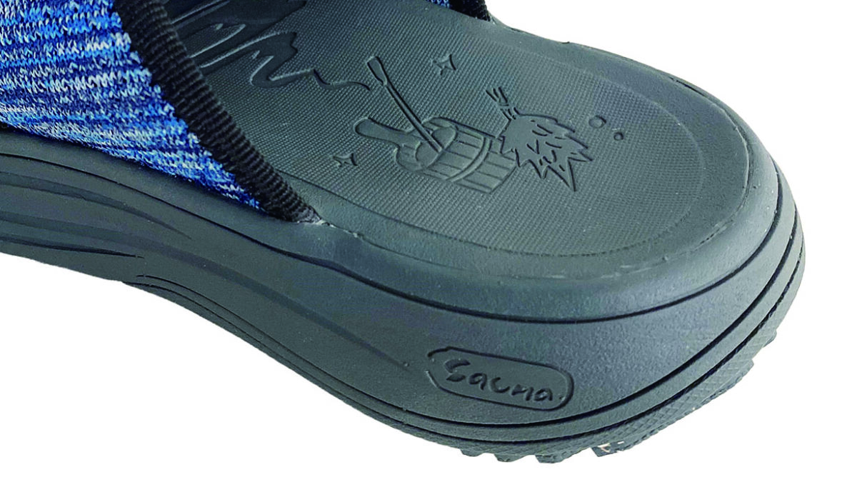 アウトドアサウナでは、川や湖、シャワー、水風呂が欠かせません。水に濡れた状態ですと、どんな履物でも滑りやすくなります。そこで、アウトソールに、滑りにくいTPR(サーモプラスチックラバー)を使用しました。部分的に防滑素材を使用することで、軽量化と防滑性を両立させています。検査機関にて、雨靴と同じ条件の防滑検査に合格しています。