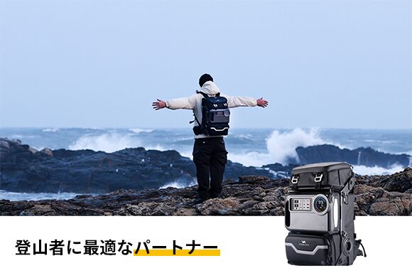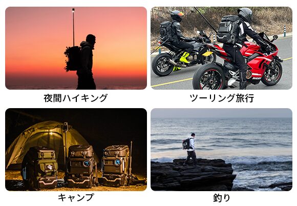 また、万が一の災害時にも頼りになります。災害時には、このポータブル電源をバックパックに取り付けることができます。そうすることで、照明や通信機器など、必要な装備を持ち運ぶことができます。さらに、バックパックの側面に装備を掛けることで、両手を自由に使うことができます。