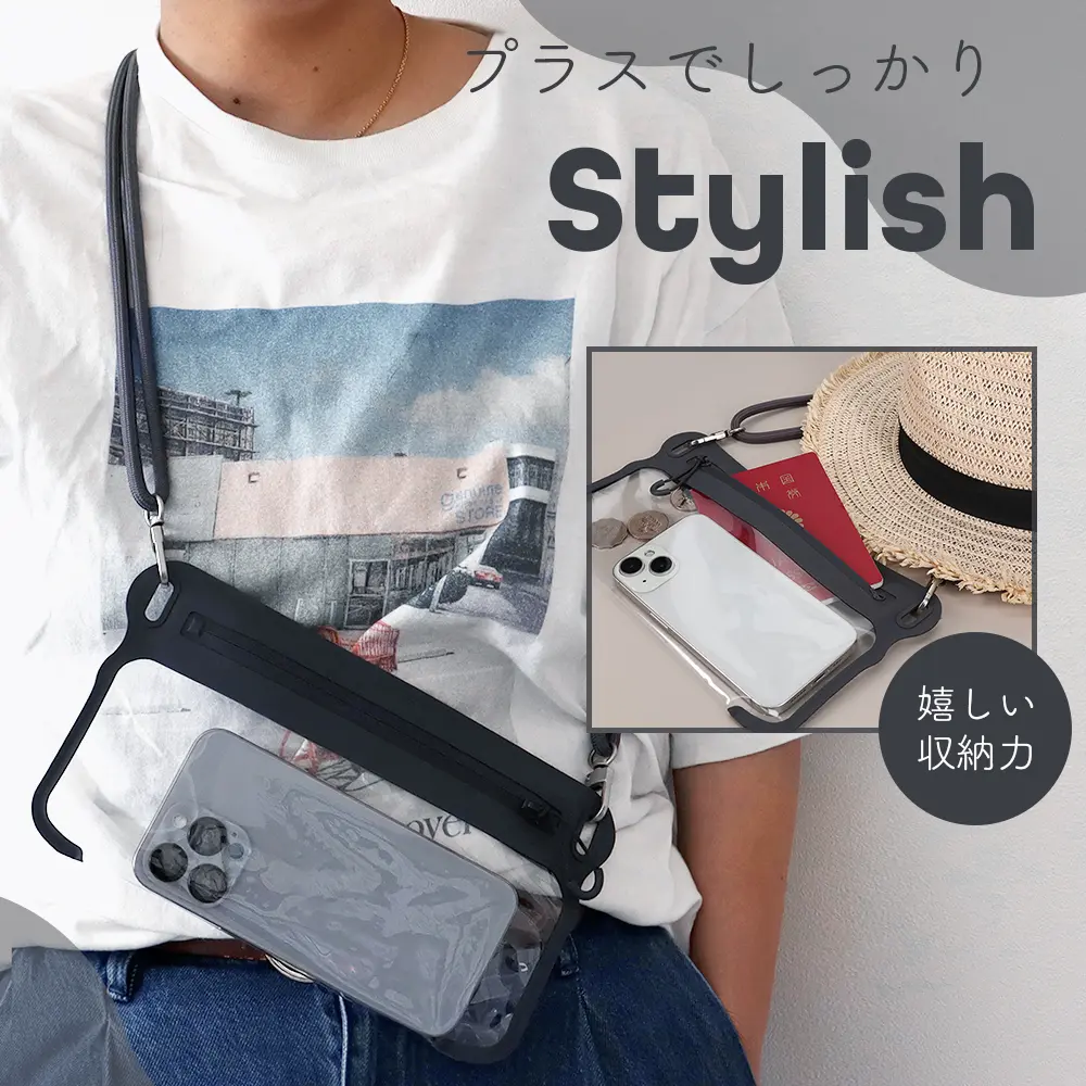 スマートフォン以外にもパスポートやアクセサリーなどを入れることができるので、アウトドアやマリンレジャーなどをめいっぱい楽しめます。