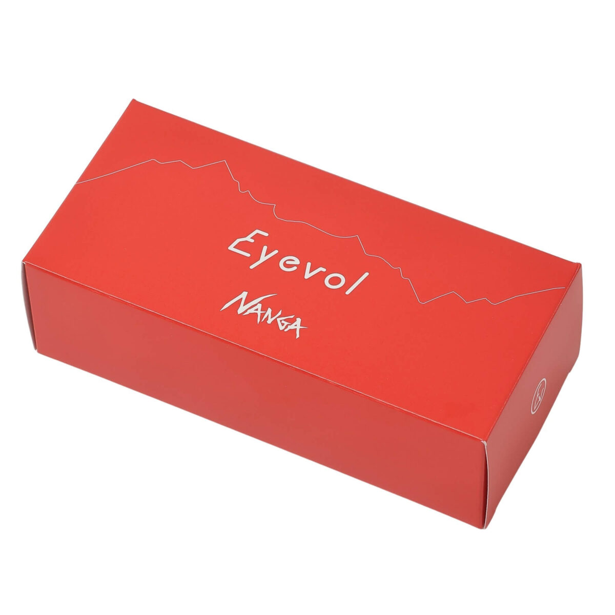 NANGAのプロダクトでも定番の”COYOTE”をラバーカラーに落とし込み、テンプル外側の Eyevol ロゴをNANGAのコーポレートカラーである”RED”に変更した特別仕様。