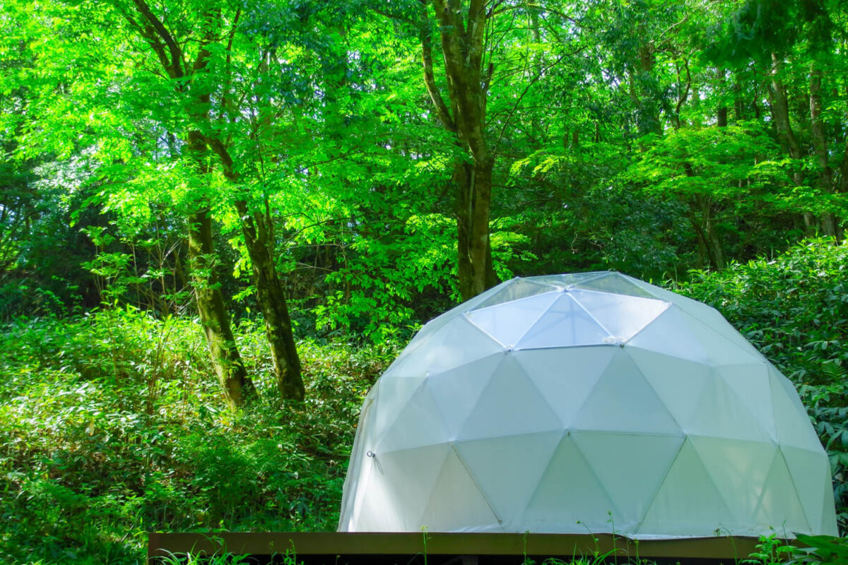 NAGOMI CAMPでは、那須の森林に囲まれた中にこれまでにはない「日本の和」を体験できるドームテントを1日4組限定でご用意しました。