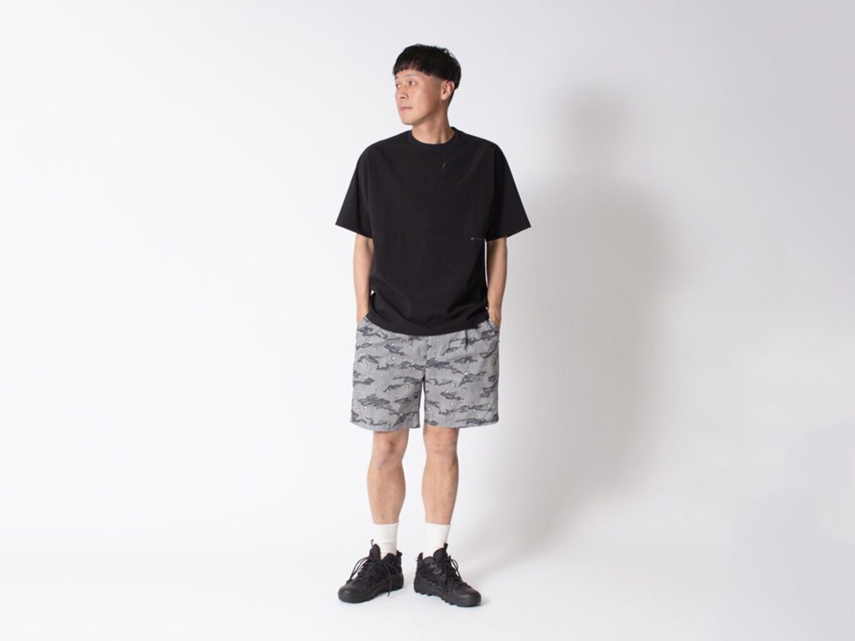 キャンプシーンでの使いやすさはもちろん、そのシンプルさからタウンユースでも活躍する半袖クルーネックTシャツ。ミニマルなデザインに十分な機能も備えているため、盛夏に活躍するアイテムです。身頃を拾いにくい、ゆったりとしたモダンなシルエットに仕上げています。同シリーズのカモフラージュ柄アイテムとコーディネートするのもおすすめです。