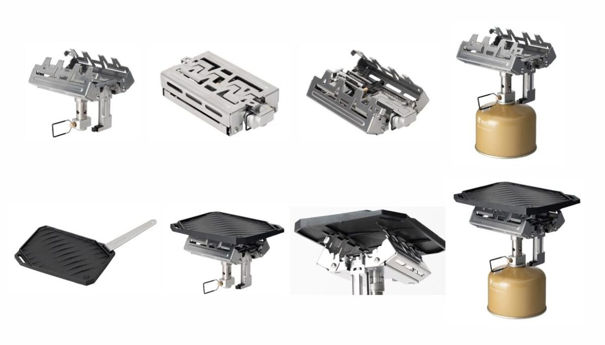 「ギガパワーストーブ レクタ」は、小型ながら局所的ではなく、広い面積に熱を伝えることが可能で、幅の広い調理器具でも効率よく熱を伝えることができるのが特徴だ。また、器具栓や混合管がバーナーヘッドの中に納まる設計で、長方形形状にコンパクトに折りたたむことができ、持ち運びにも便利である。「ギガパワーストーブ レクタ グリドル」は、鋳鉄製のため蓄熱性が高く、焼肉やステーキなどの調理に使用することが可能となる。ソロやデュオキャンプにおける調理時に活躍してくれるに違いない。
