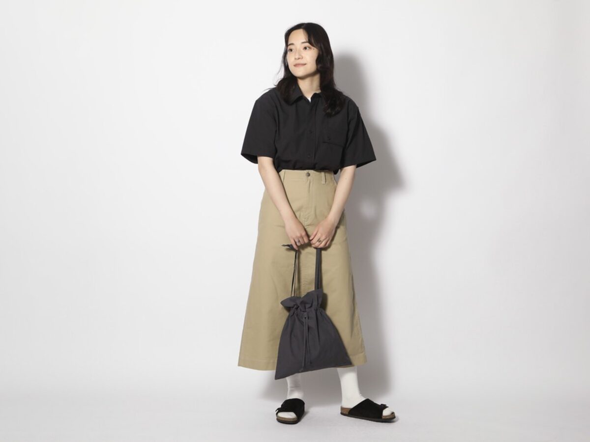 アイテムでは、シャツやパンツに加え、オーバーオールやウィメンズ用のロングスカートまで幅広くラインナップ。ユニセックスでも着用できる豊富なサイズを用意しています。カラーでは、今季はブラック、カーキ、ライトグレーの3色を展開します。