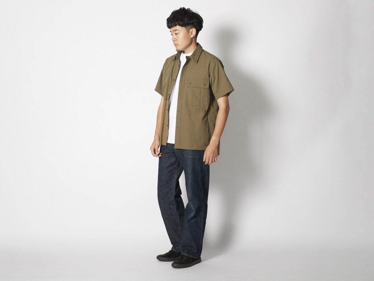 ミリタリーライクな雰囲気を活かしたショートスリーブシャツ。大容量のフラップポケットを右胸に設け、ポケット下にはカラビナ等を提げられるループも備えています。