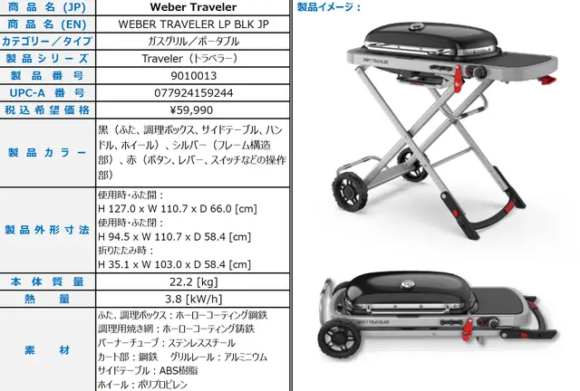 その名も”Weber Traveler”(ウェーバートラベラー)