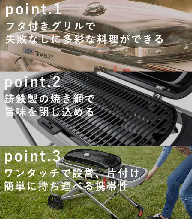 どこでも、多彩で本格的な料理を失敗なしに。 「Weber Traveler」