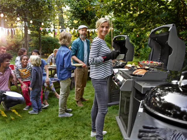 アメリカのお庭で見るような、大きなグリルにホームパーティーで楽しむ人たち。