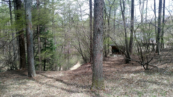 ▼林道の奥に広がる、3,500平米程度の平坦地。