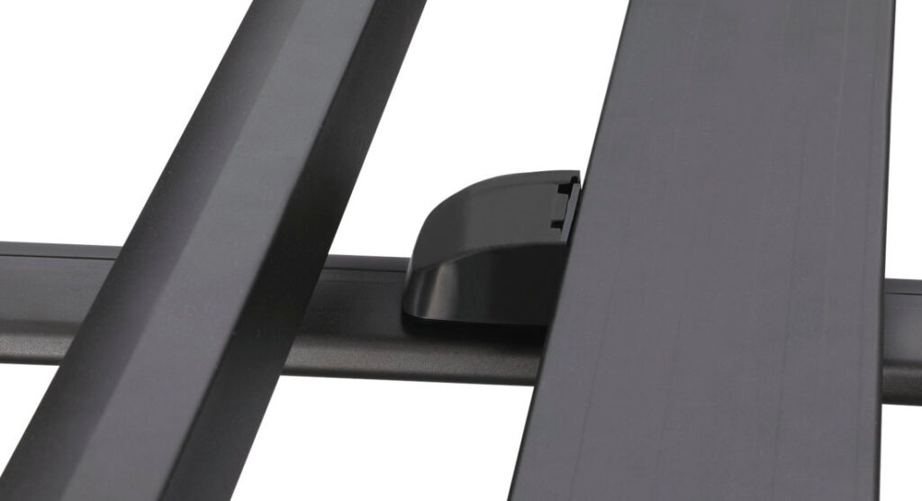 取り付け金具部分には、金具の露出を防ぐカバーを付属。積載物の引っ掛かりを防止します。